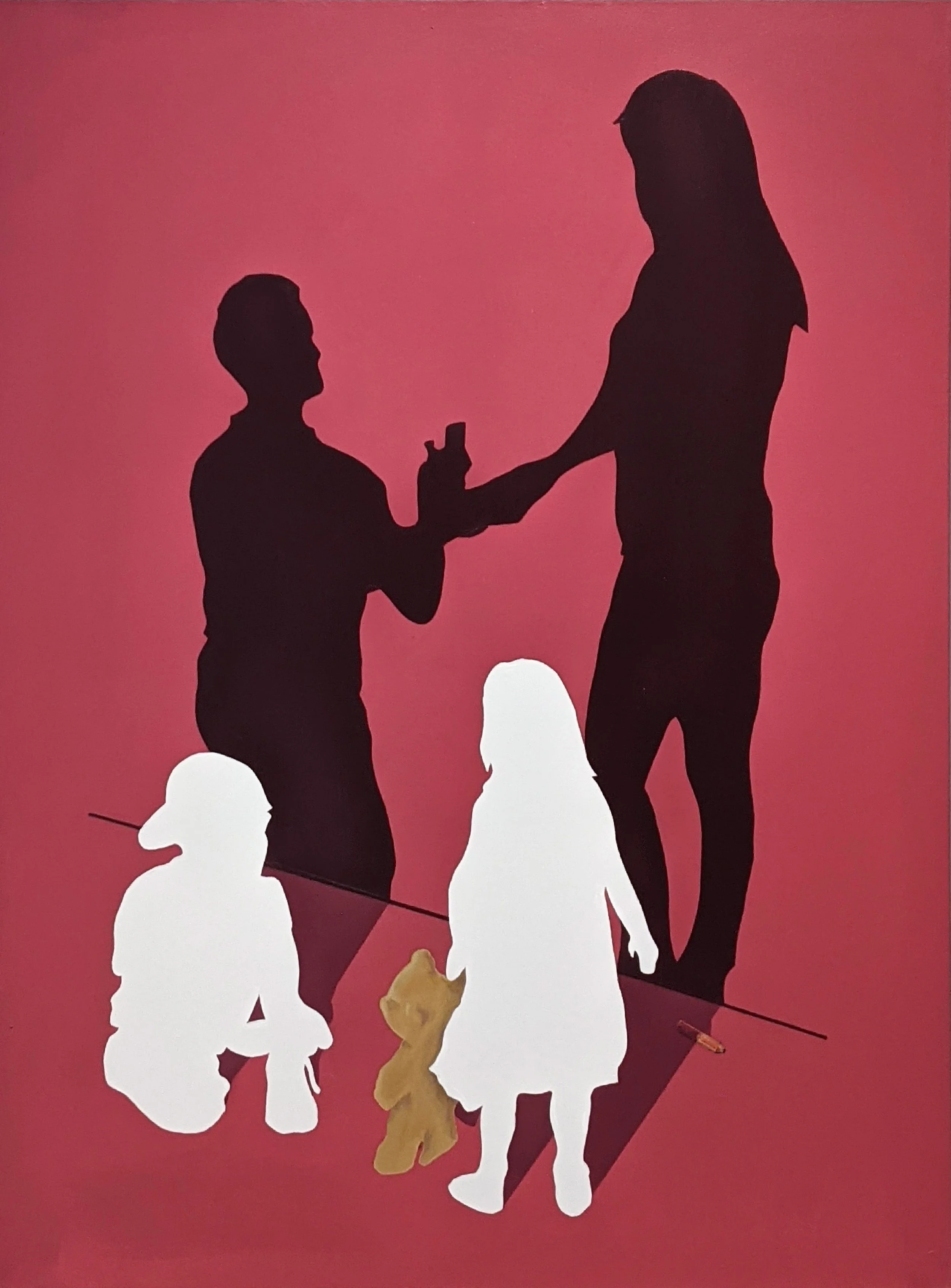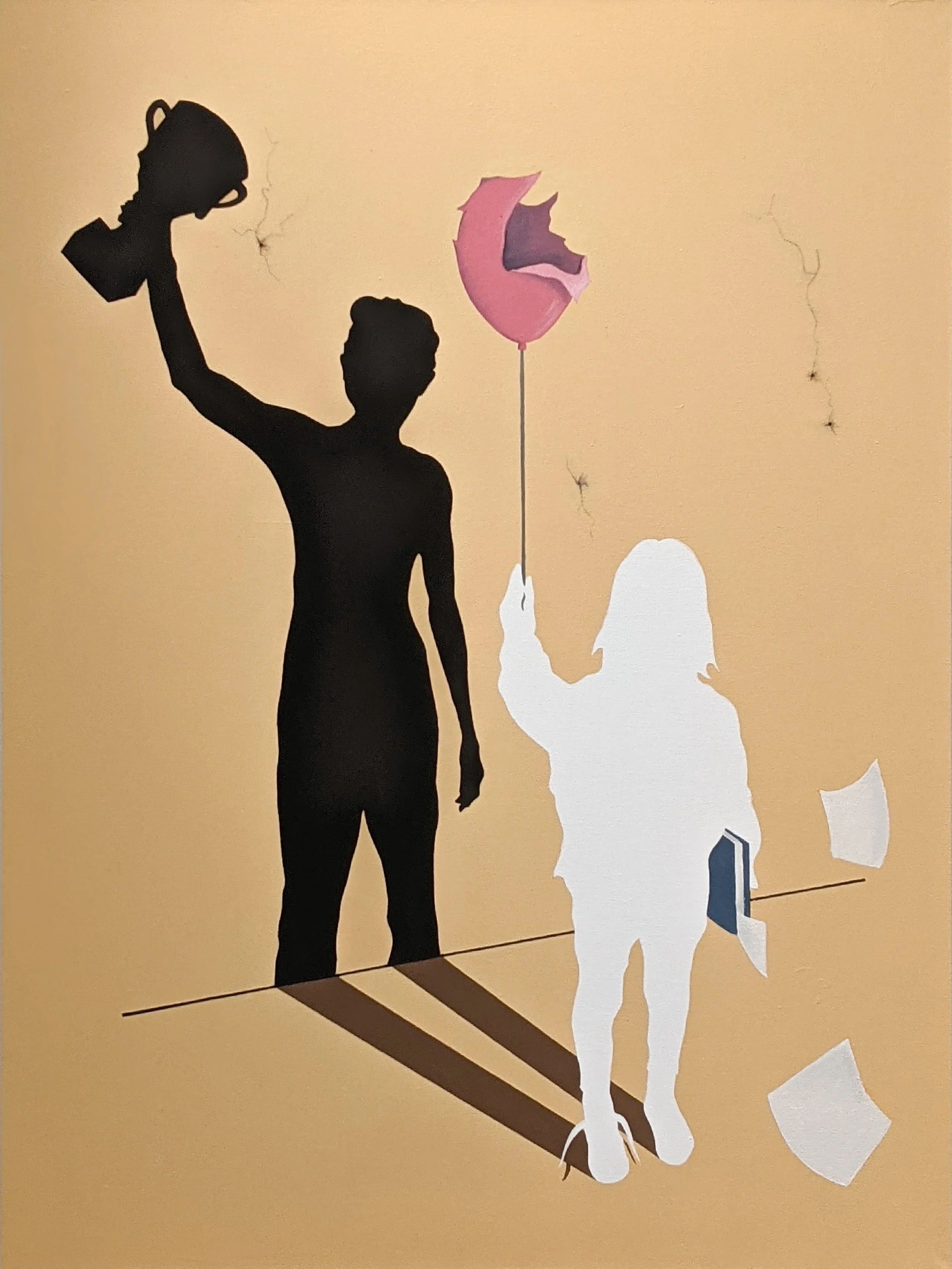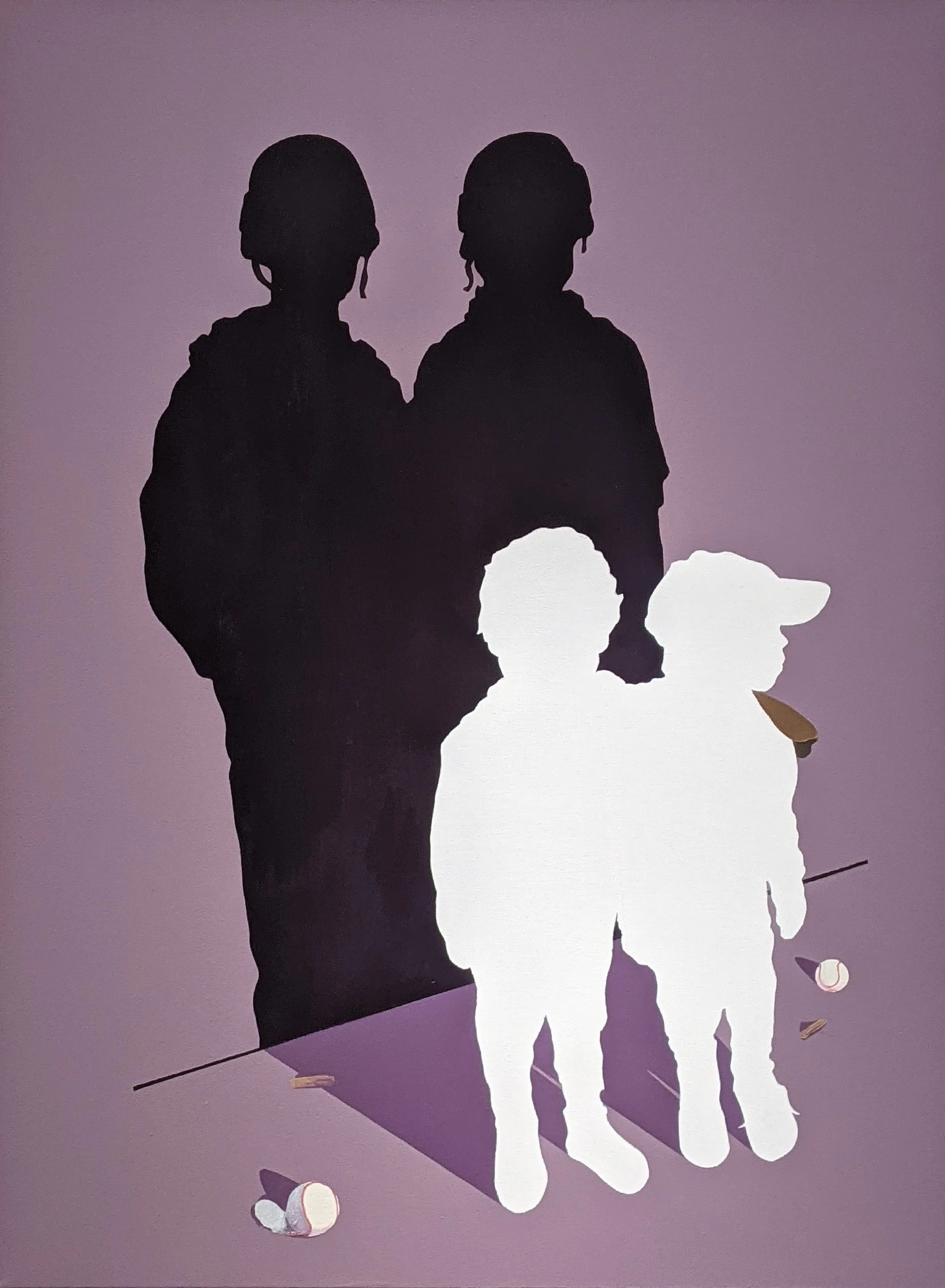 This series is titled “Hindsight” and is an extremely personal subject I have decided to decipher onto canvas. Unfortunately, we are reminded of the horrors of gun violence too often in this country, yet only act or start debate after a tragic loss. Many times, money and personal game outweigh the safety of our population. It is our responsibility to protect the youth of this country and with every young life lost, we are not only losing a child, neighbor, or friend but squandering the potential role models and heroes of our nation.